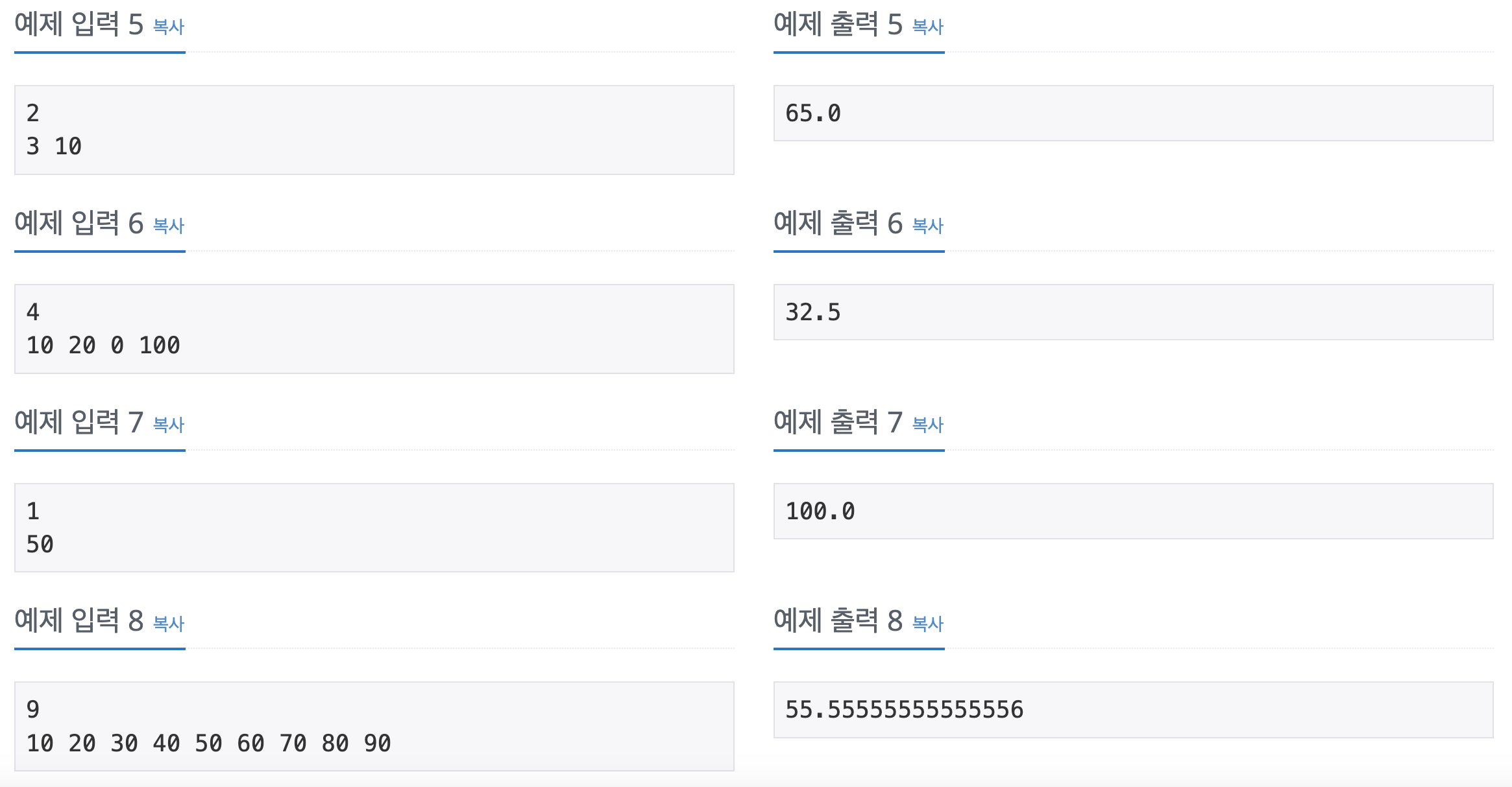 문제의 예제 출력을 보면 소수점까지 표시되어있다.
