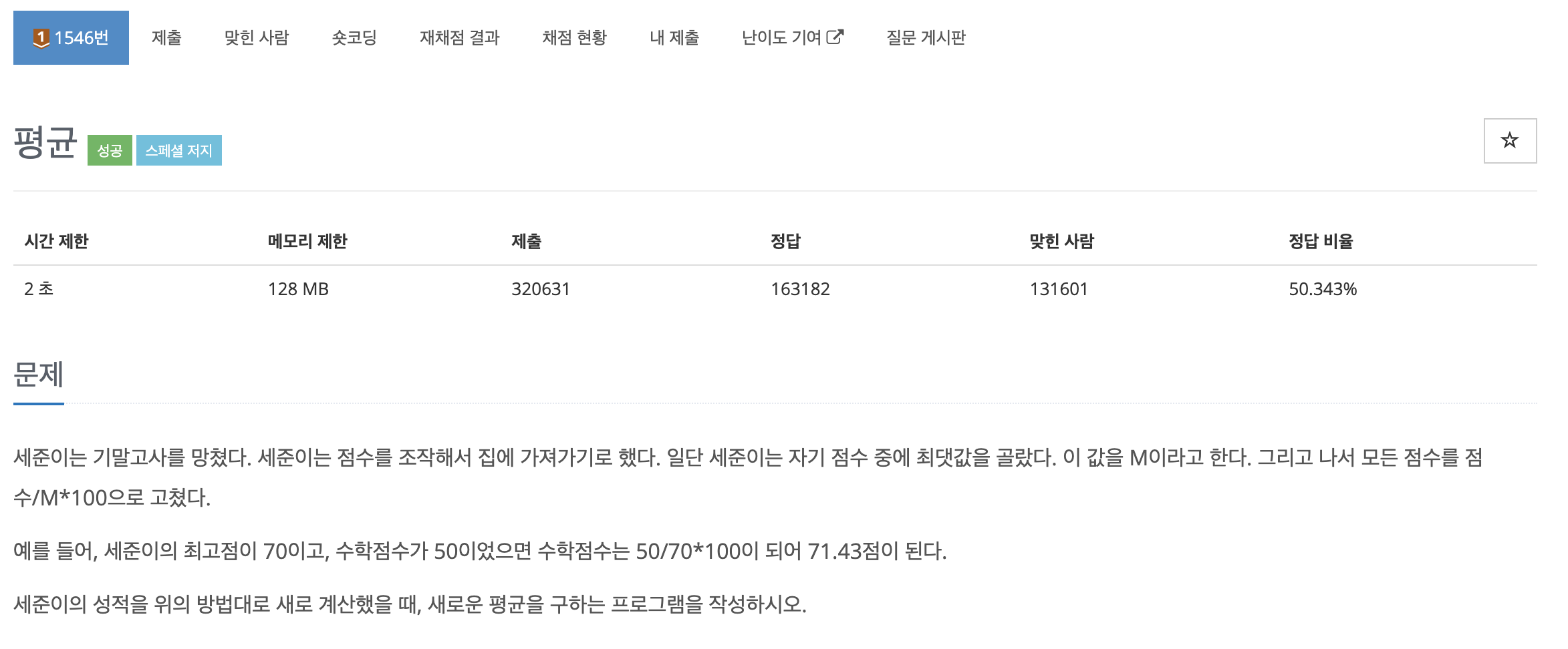 [백준] 1546번 : 평균 - C/C++