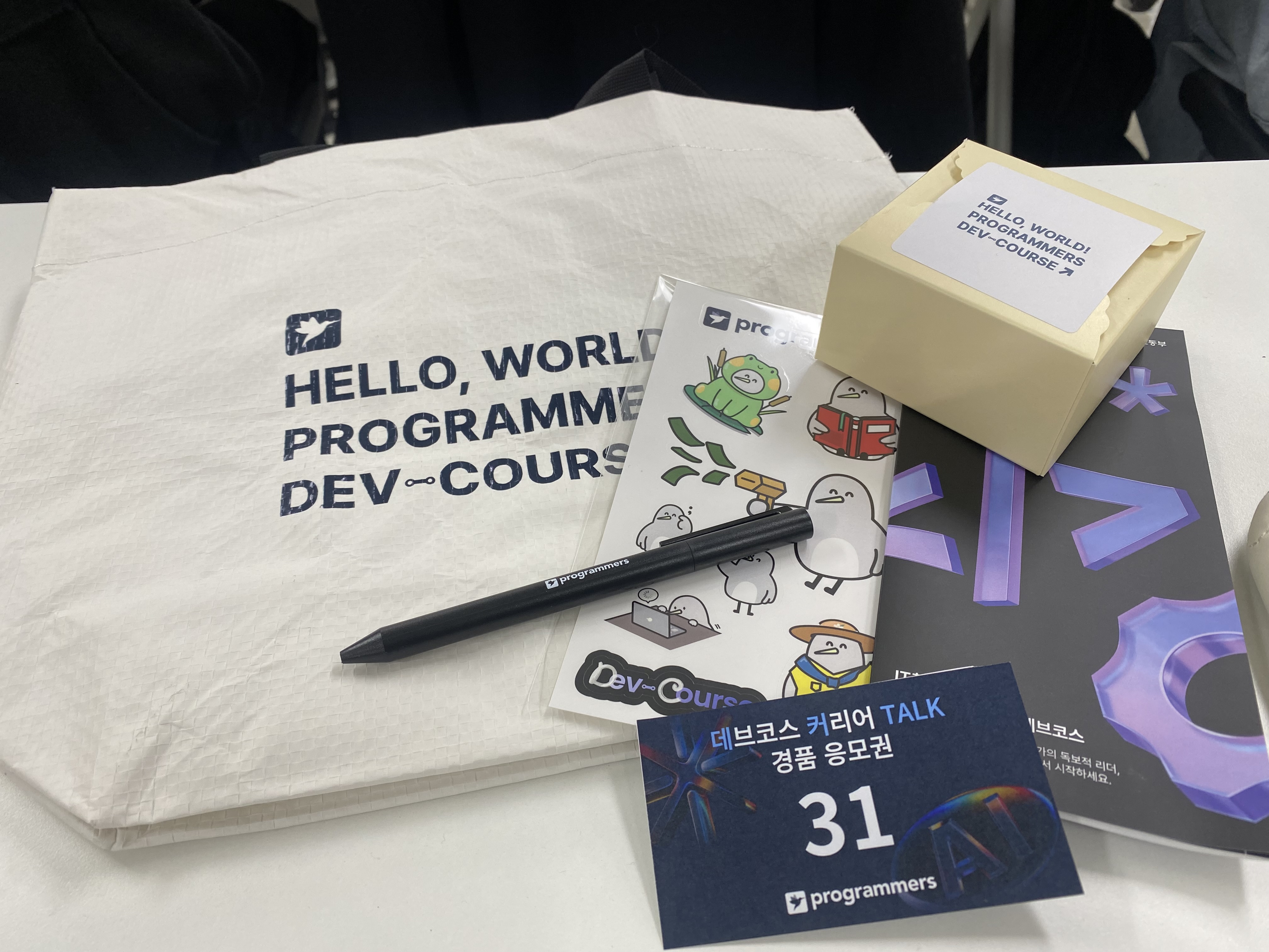 타포린백이랑 스티커, 볼펜 간단한 다과도 오프라인 당첨자에 한해서 받을 수 있었다.