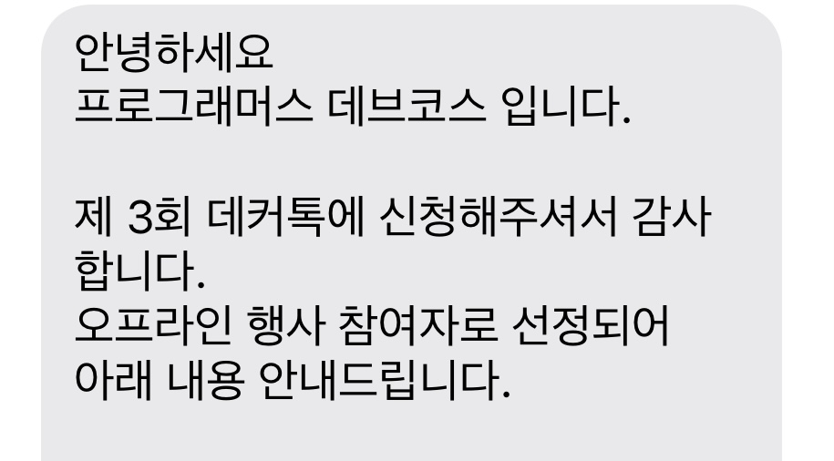 오프라인 신청자가 많아서 일부만 참여할 수 있었다고 문자에 포함되어 있었다.