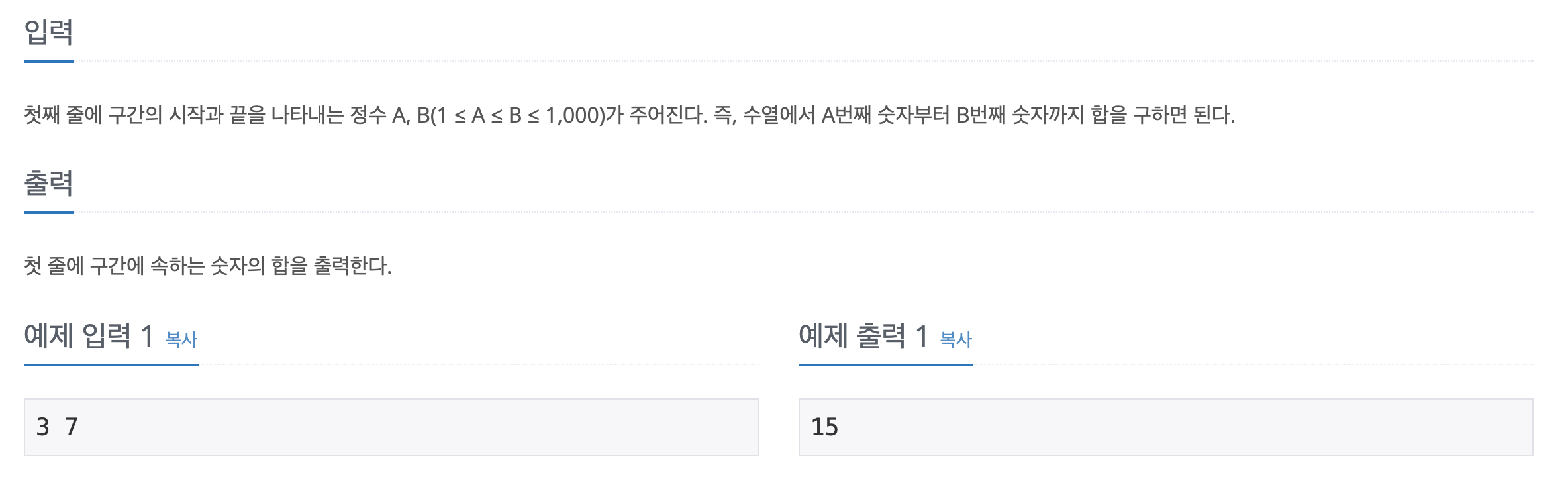 구간합 [a,b]는 sum += ary[i] 로 쉽게 구할 수 있다.