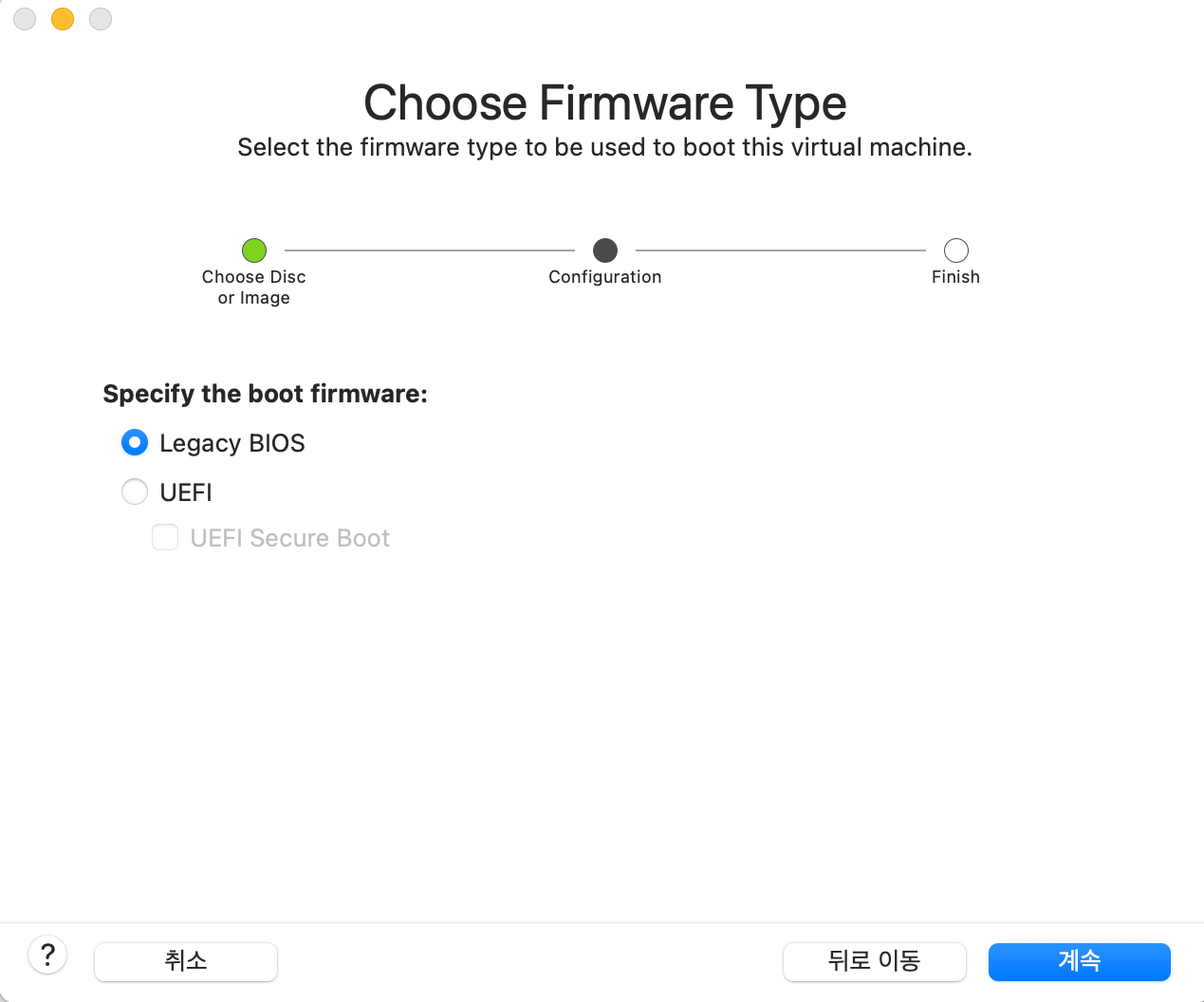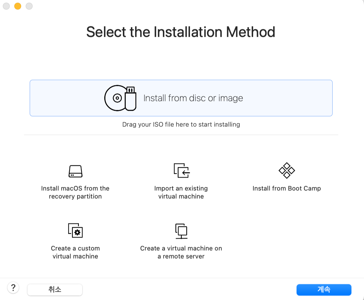 푸른빛 박스로 채워진 '디스크 혹은 이미지로부터 설치'라는 문구가 보일 것이다.