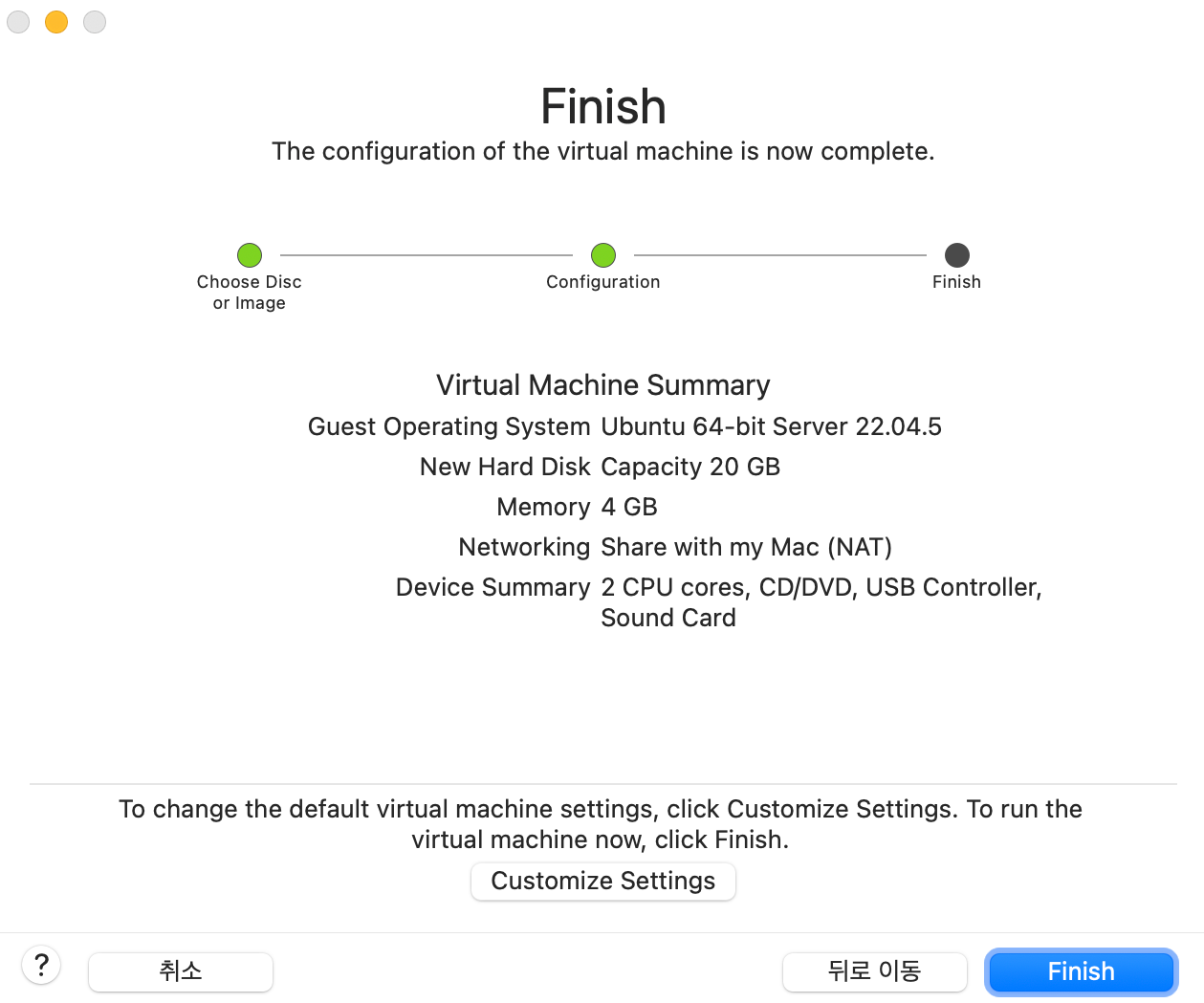 '계속'을 계속 누르면(ㅋㅋ) 'Finish'가 나오는데, 그럼 완성!!