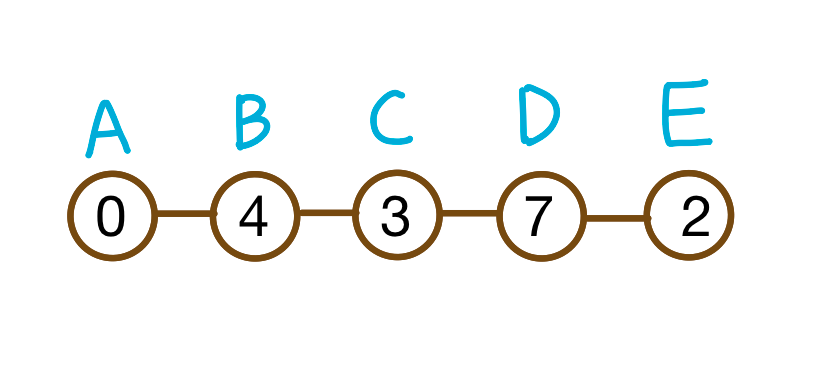 ABCDE 순서로 일자로 나열되기 때문에 해당 예시는 1을 출력하게 되는 것이다.