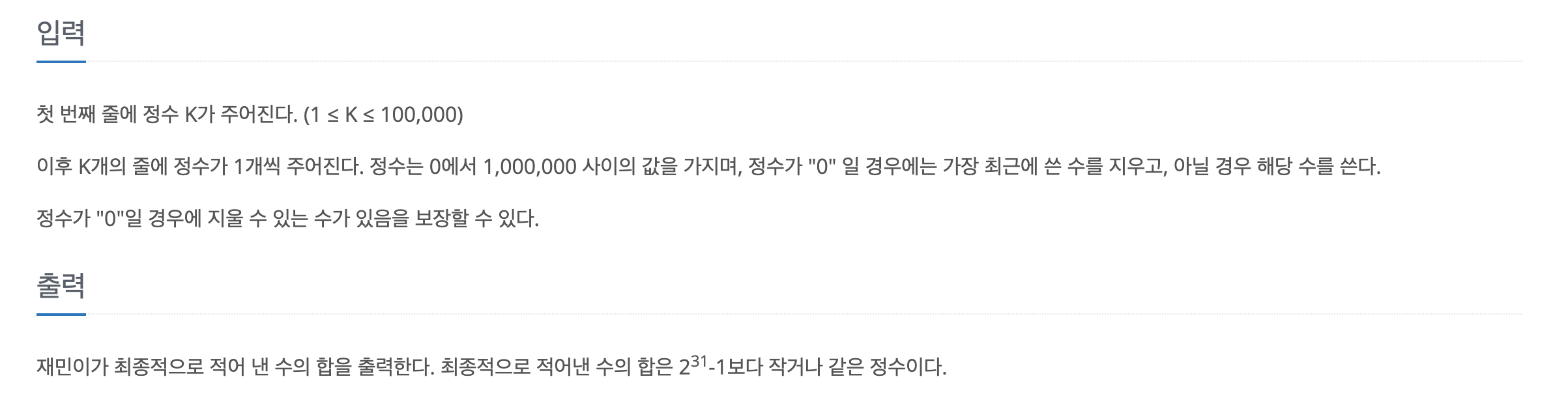 2. k개만큼의 수 입력 받기 (0을 입력했다면 최근에 입력한 수 지우기)
