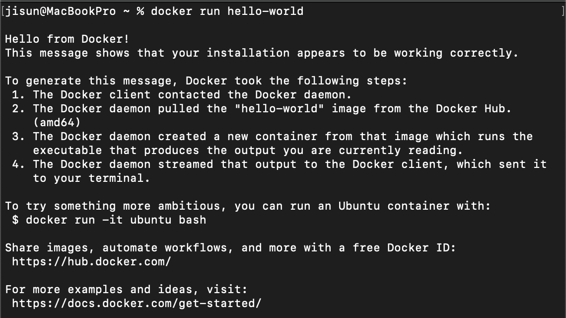 이로써 도커를 활용할 기본적인 세팅이 끝났다.