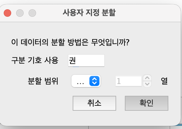 3. 분할 기준을 "권" 글자로 설정, 분할 범위 전체 선택