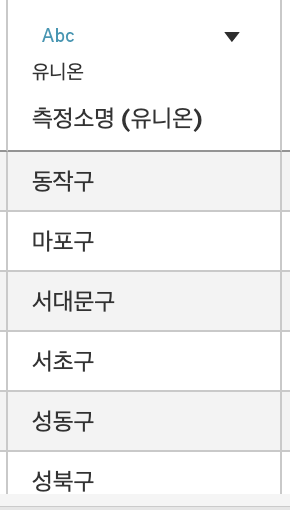 측정소명이 "동작구", "마포구" 처럼 행정구 단위로 이미 정제된 상태이다.