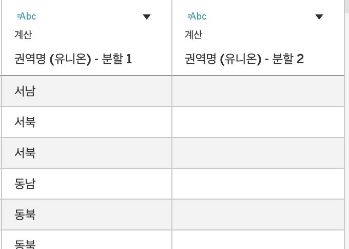 이번 3주차 과제였던 "데이터 분할 기능을 사용하여 필요한 필드 만들기"를 충족하기 위해서는 권역명 필드를 활용해서 분할 과정을 다시 짚어보자.