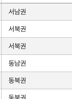 서/남/북/동 이라는 방향 정보 + 권역 단위 가 결합된 형태로도 해석 가능하다.