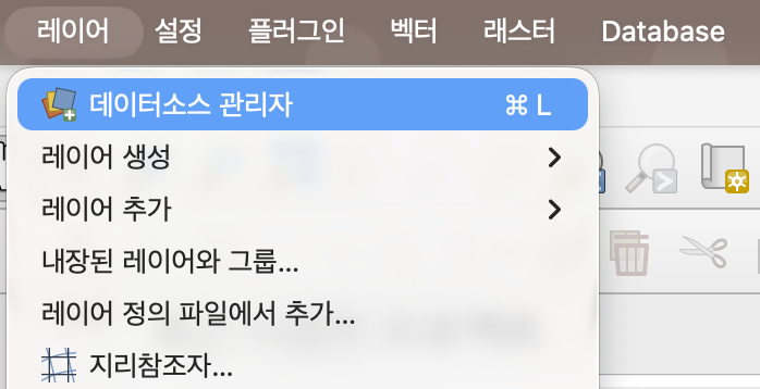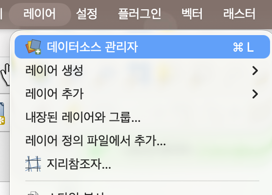 레이어 > 데이터소스 관리자 > 벡터
