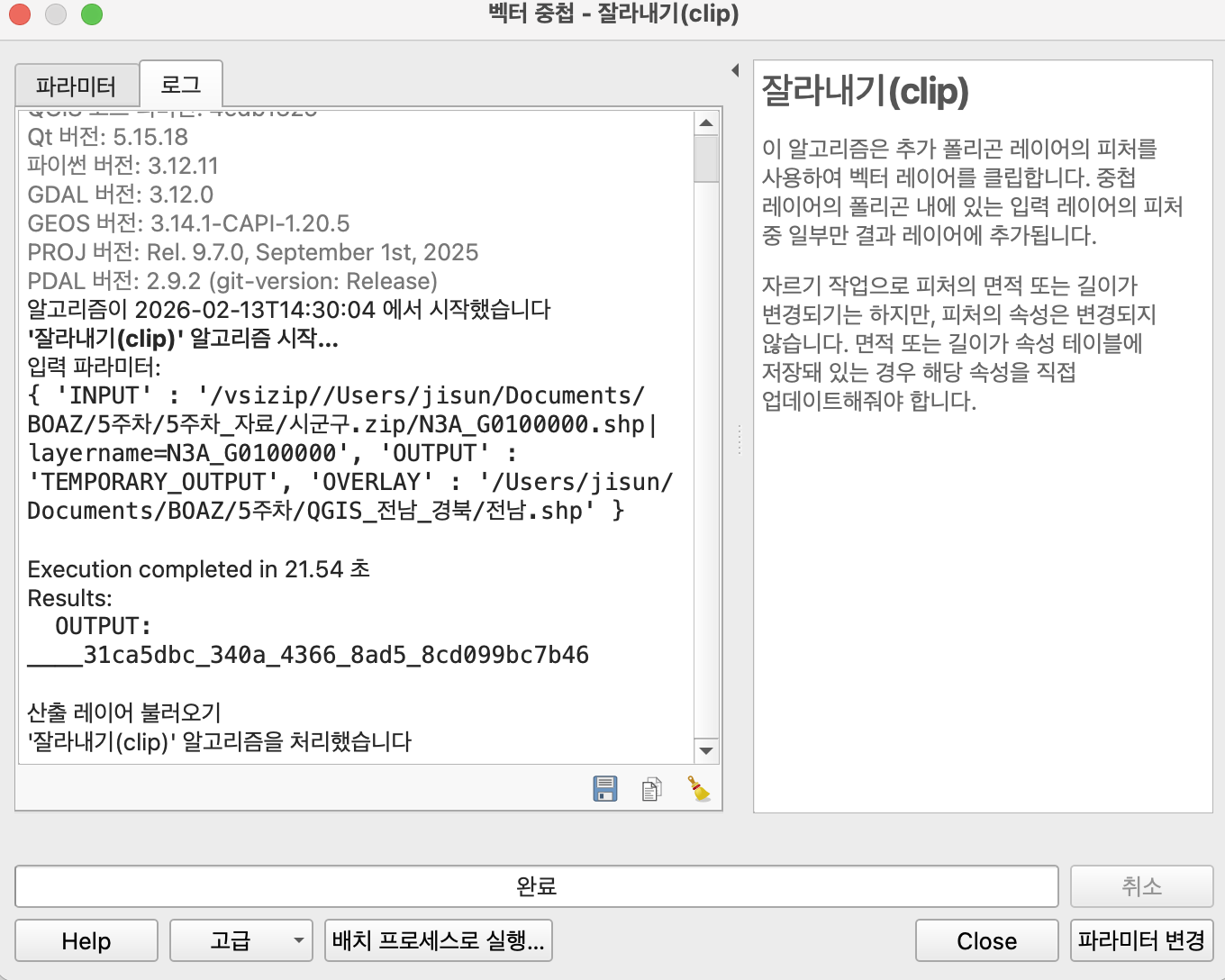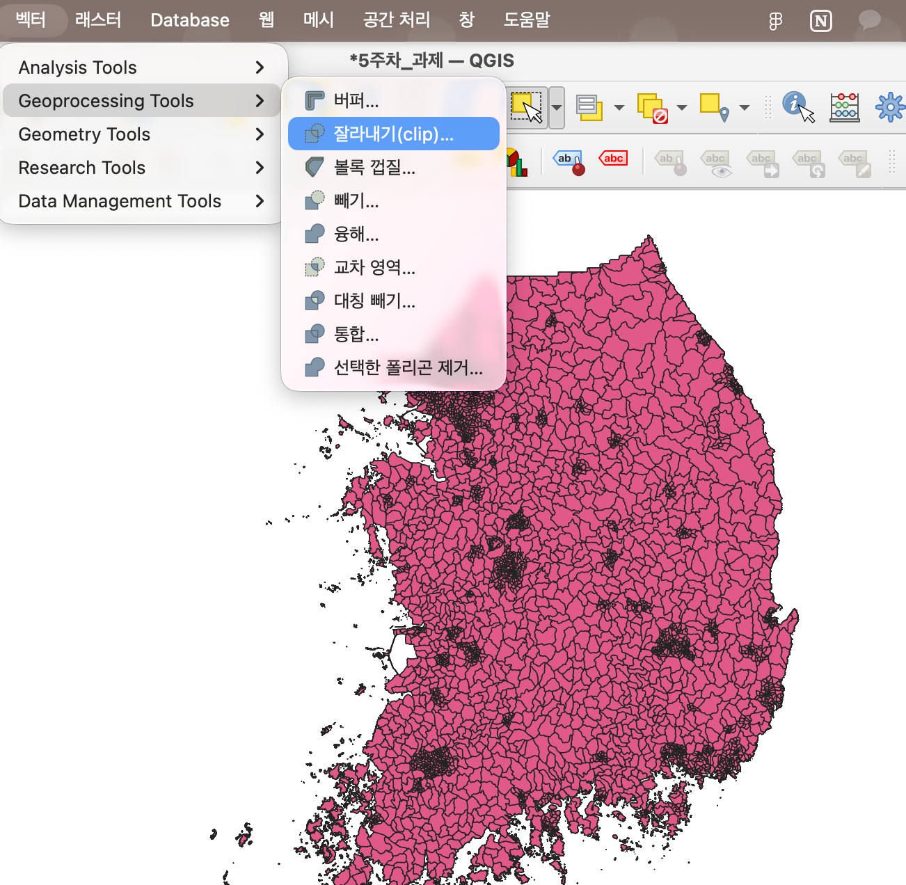 벡터 > Geoprocessing Tools > 잘라내기(Clip)