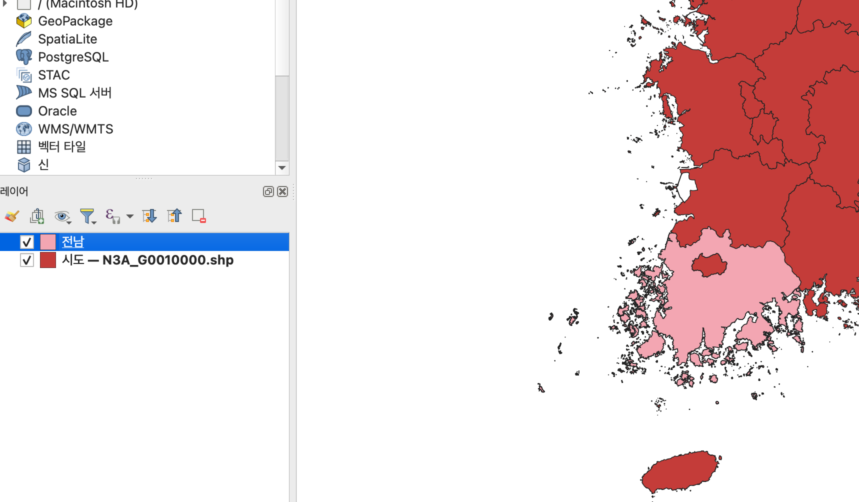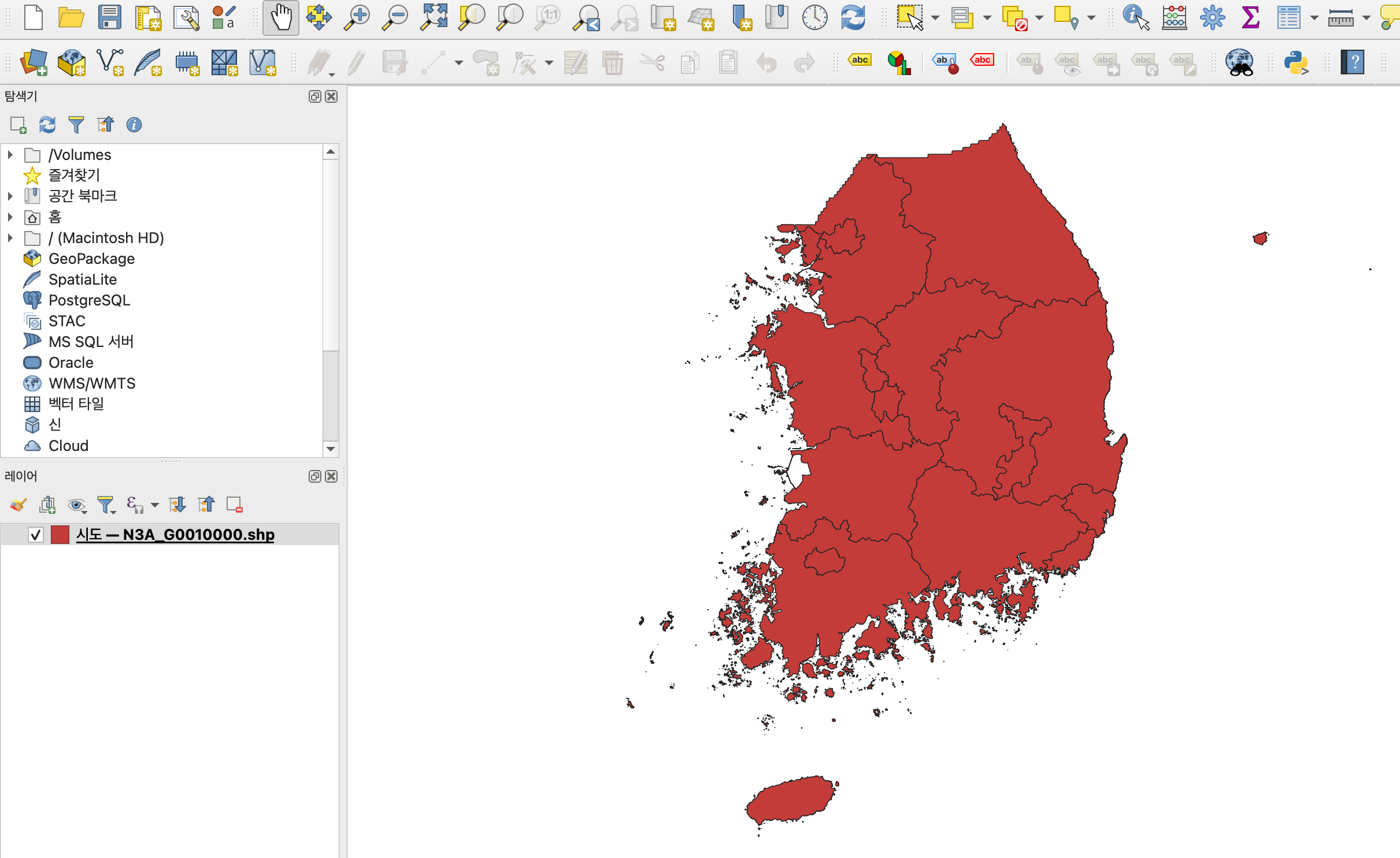 추가 버튼을 누르고 Close 를 누르면 아래와 같이 시도가 나누어진 지도가 나오는 것을 확인할 수 있다.
