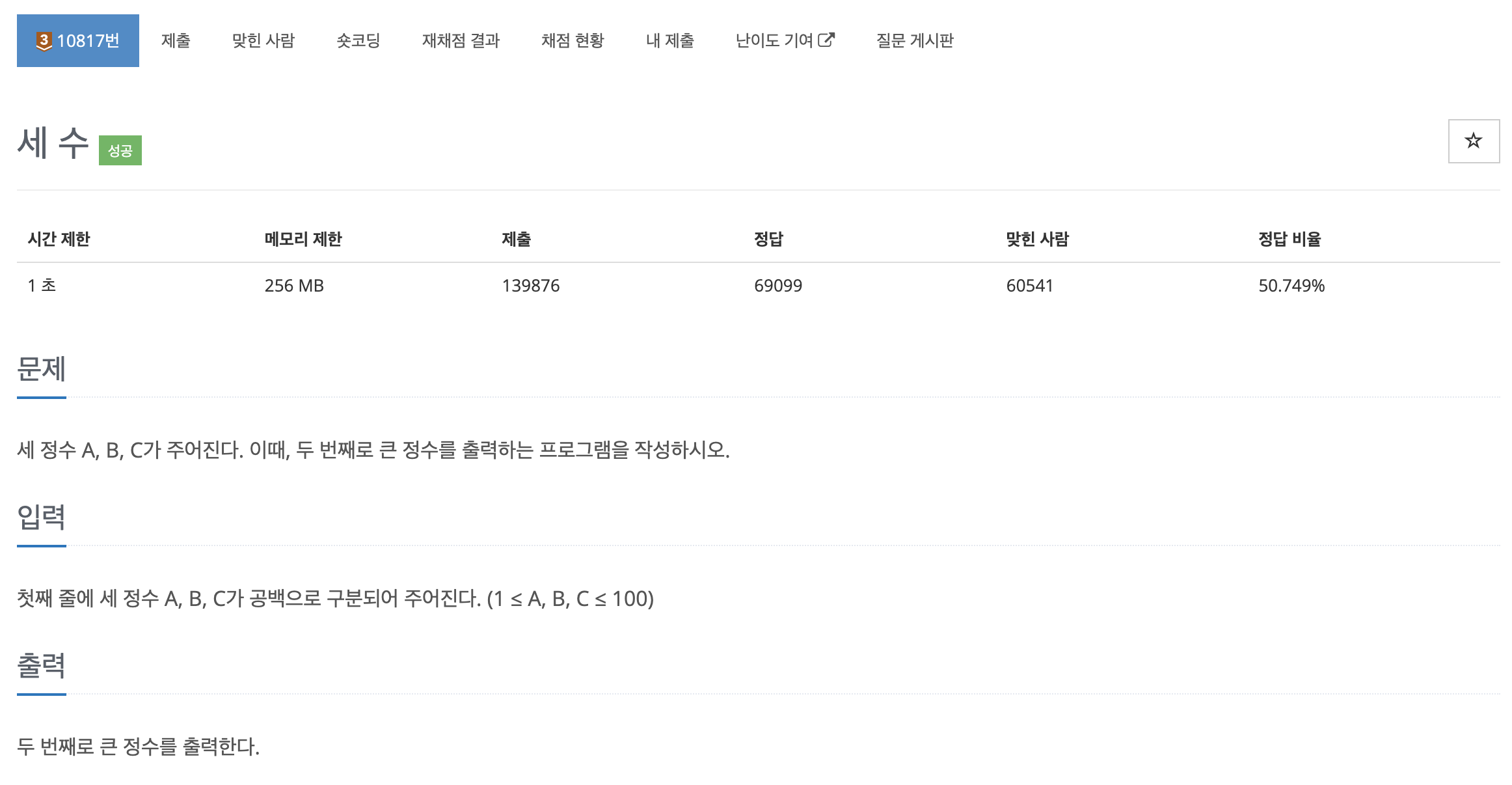 문제에서 두 번째로 큰 정수를 출력하라고 했다.