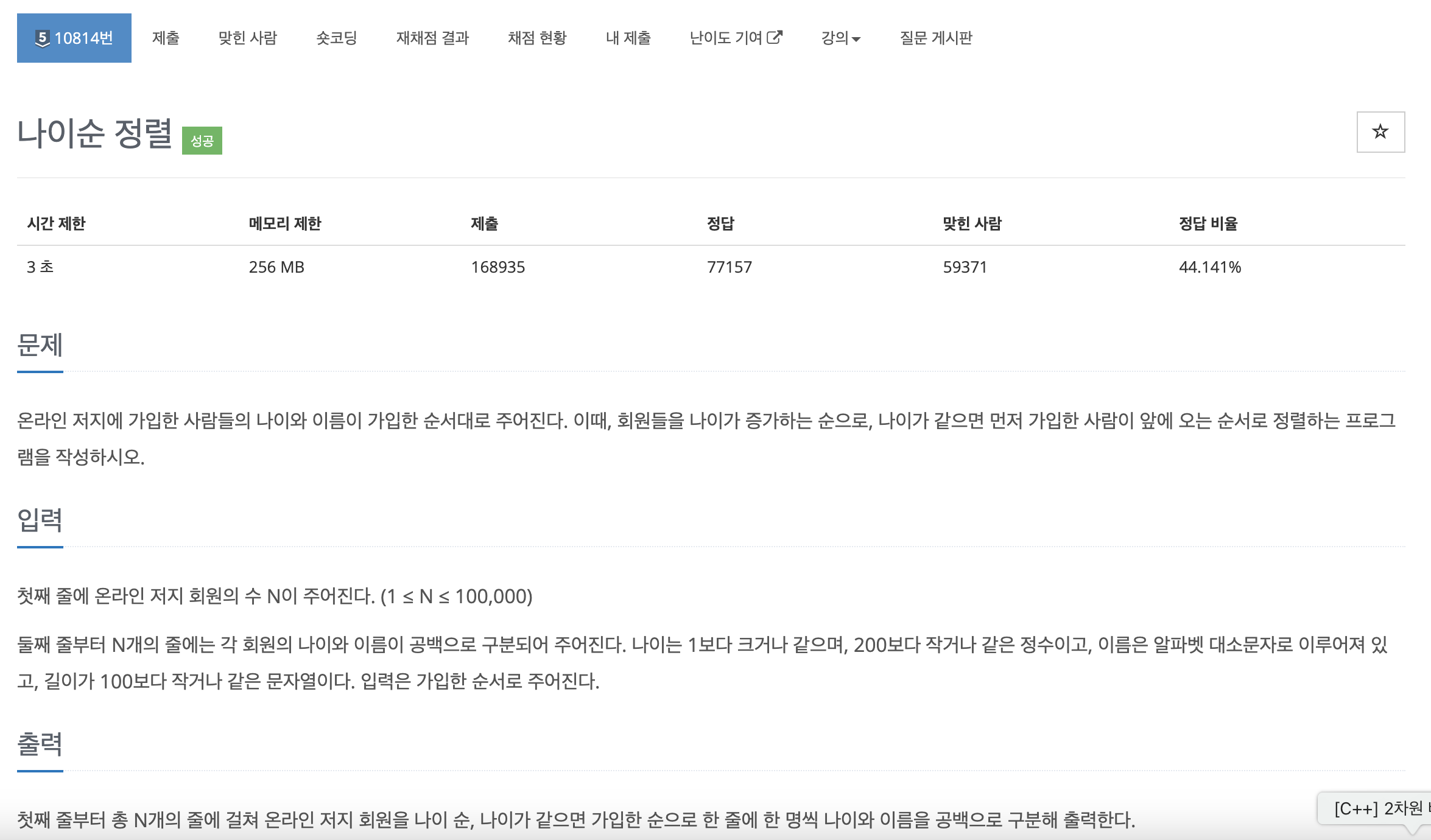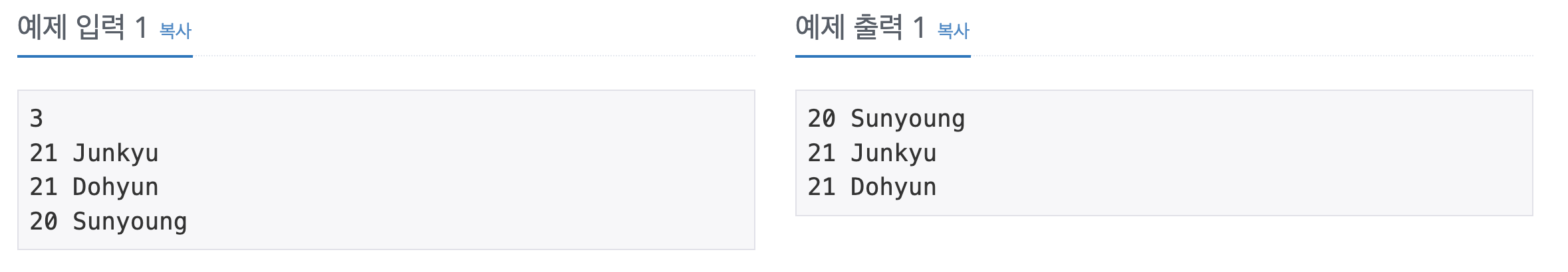 "만약 나이가 같다면, 입력한 순서대로 출력하기."