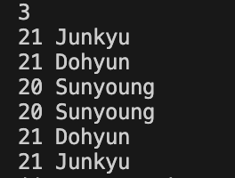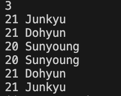 이렇게 Dohyun과 Junkyu의 순서가 바뀌어서 출력된다.